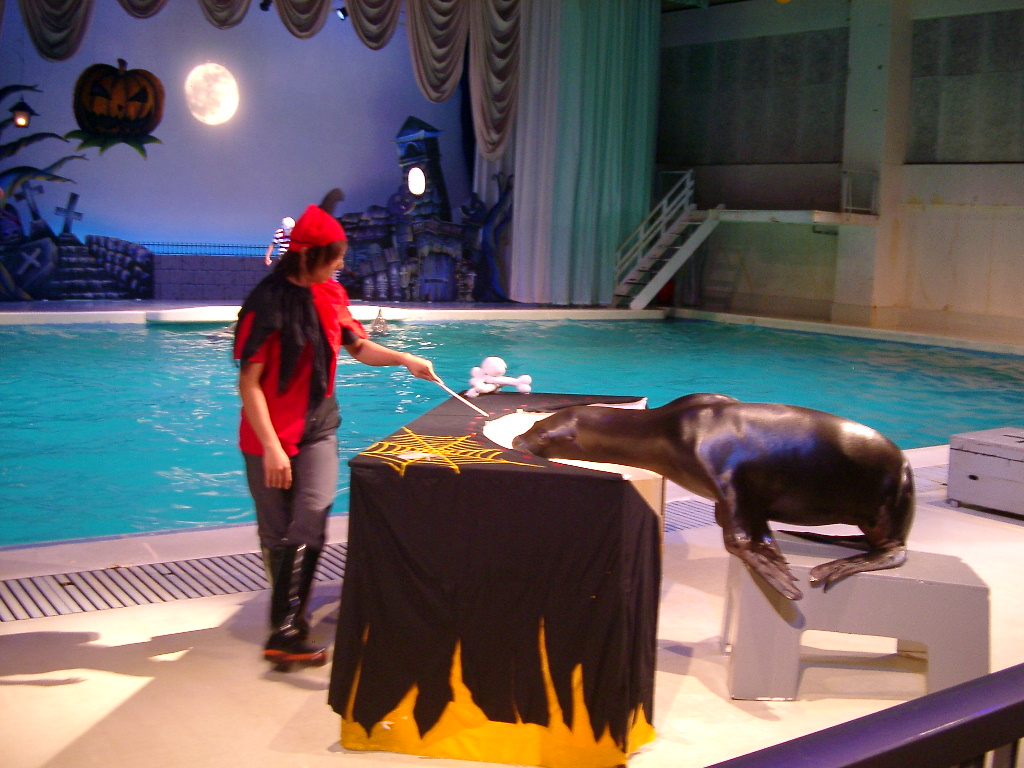 んで・・・ イルカとアシカの音楽隊で 「森のくまさん」 を熱演